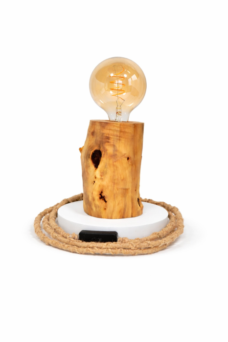 Lampa decorativa 'Rustic Log' de la Green Sh3ll este o piesa de decor autentica, realizata manual din lemn masiv natural de plop. Fiecare trunchi de lemn este unic, pastrandu-si textura si crapaturile naturale, transformand lampa intr-o mica opera de arta rustica. Designul minimalist, dar cald, o face perfecta pentru a adauga o nota de farmec natural si eleganta nefinisata oricarui spatiu.