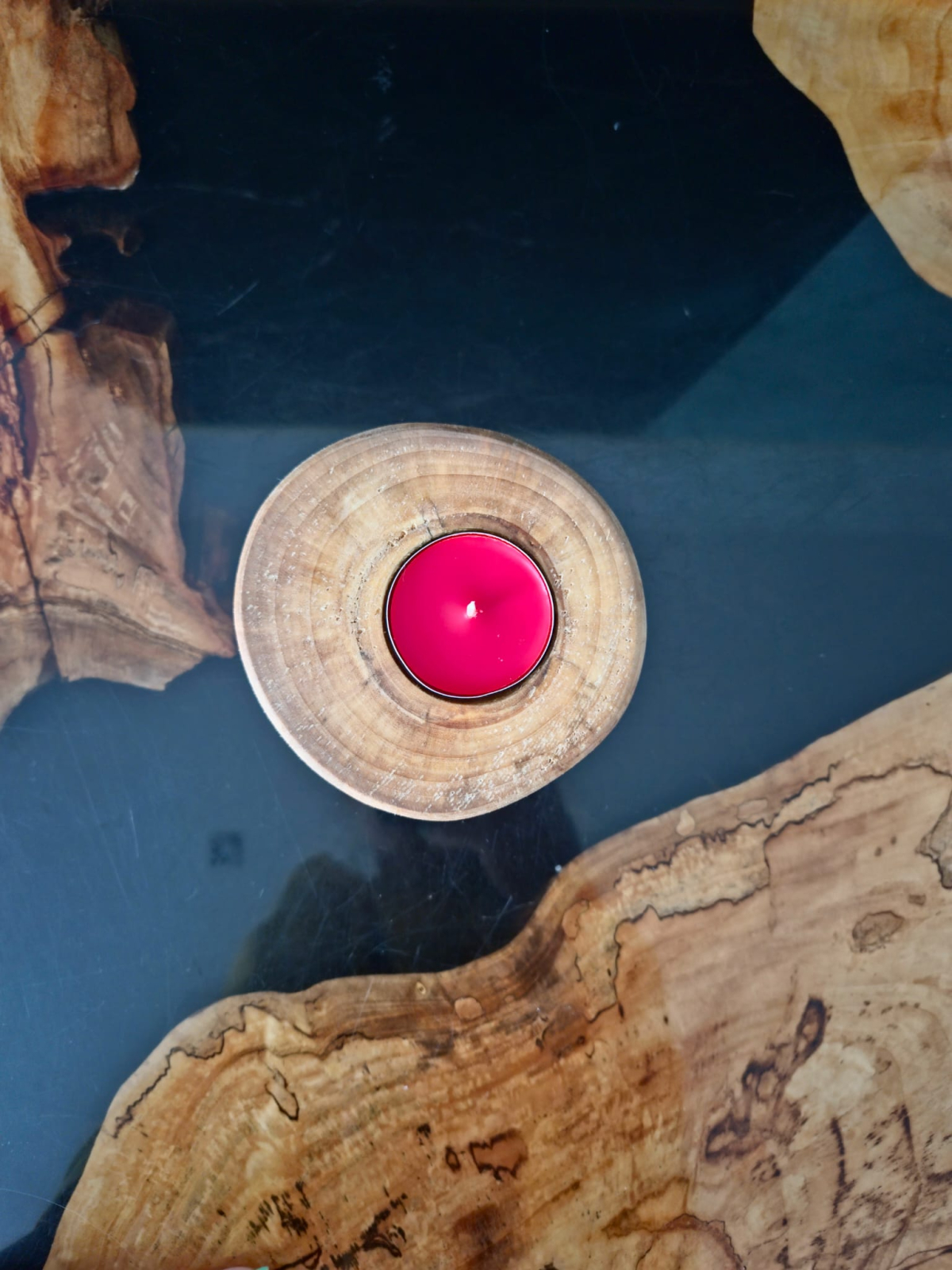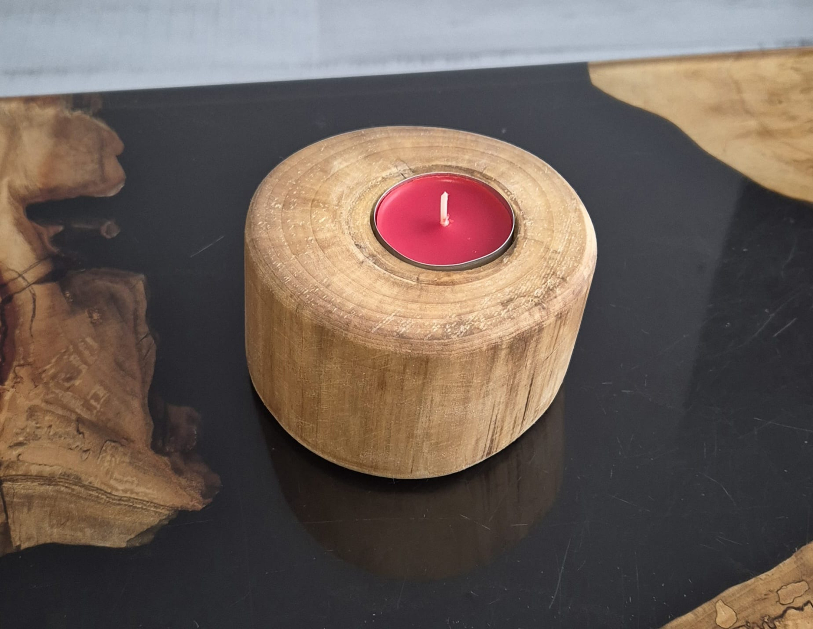 Suport pentru lumanare pastila realizat manual din lemn de dud. Forma rotunda si finisajul simplu pastreaza autenticitatea materialului si subliniaza estetica organica definitorie pentru GreenSh3ll. Fiecare suport este unic prin textura, nodurile si desenul natural al lemnului.